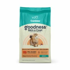 Canidae Goodness Dry Cat Food Formulas is a health-first line formulated specifically to support healthy adult cats. Developed in partnership with a board-certified veterinary nutritionist, each bite is packed full of ingredients scientifically proven to provide focused nutrition for your cat. Our Skin and Coat Formula with Real Salmon has real salmon as the first ingredient and is composed of high-quality, wholesome ingredients. Rich in omega 3 and 6 fatty acids to support a shiny coat and natural skin barrier, along with zinc and biotin for a healthy skin and coat. Made in the USA with domestic and globally sourced ingredients. High quality, wholesome ingredients means you’re giving your pet the goodness they deserve with no corn, wheat, soy or other fillers. Canidae was founded in 1996 with the belief that pet food needed to be better. Better for pets and better for us all. We nourish pets and planet in every bowl, through our use of wholesome, responsibly sourced proteins, and our investment in regenerative farming, sustainable operations, and eco-friendly packaging, setting a new standard for the pet food industry. Everything we do results in a better product. A bowl full of goodness.