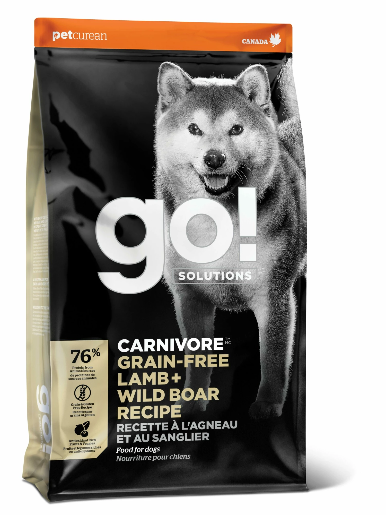De-boned lamb, lamb meal, de-boned salmon, herring meal, lentils, peas, chickpeas, tapioca, salmon meal, chicken fat (preserved with mixed tocopherols), de-boned wild boar, natural flavour, flaxseed, salmon oil, dried chicory root, apples, carrots, cranberries, dried Lactobacillus acidophilus fermentation product, dried Enterococcus faecium fermentation product, vitamins (vitamin A supplement, vitamin D3 supplement, vitamin E supplement, niacin, L-ascorbyl-2-polyphosphate (a source of vitamin C), d-calcium pantothenate, thiamine mononitrate, beta-carotene, riboflavin, pyridoxine hydrochloride, folic acid, biotin, vitamin B12 supplement), minerals (zinc proteinate, iron proteinate, copper proteinate, zinc oxide, manganese proteinate, copper sulphate, ferrous sulphate, calcium iodate, manganous oxide, selenium yeast), potassium chloride, sodium chloride, choline chloride, taurine, dried Aspergillus oryzae fermentation extract, dried Bacillus subtilis fermentation extract, dried rosemary, yucca schidigera extract.