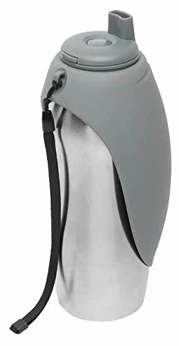 Messy Mutts – Stainless Travel Water Bottle with Silicone Flip Up Bowl, 24 oz / 700mL, Grey.