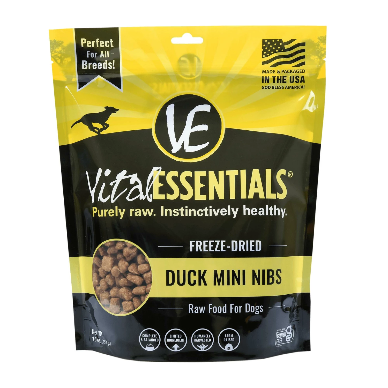 Duck, duck gizzard, duck heart, duck liver, herring oil, mixed tocopherols (preservative), vitamin E supplement, zinc amino acid complex, iron amino acid complex, copper amino acid complex, manganese amino acid complex
